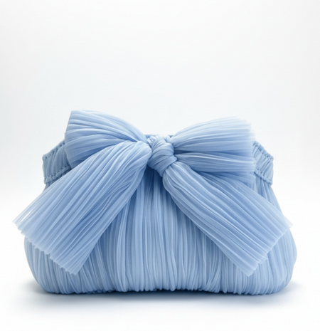 Our Belle Bow Bag in Something Blue is handmade with love and meticulous attention to detail, each one crafted from delicate pleats of luxurious organza. The show-stopping oversized bow adds just the right touch of drama, while the romantic blue shade makes it the perfect nod to tradition as your “something blue.”
