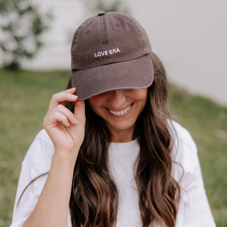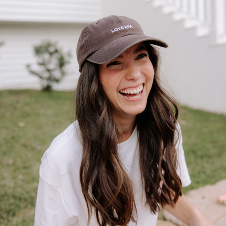 The cool-girl staple for your wedding era and beyond. In a rich chocolate brown with a washed vintage finish, it’s relaxed, effortless, and ready to be styled on repeat. Whether it’s a hens party, coffee run, wedding morning prep, or honeymoon vibes, this cap has you covered.