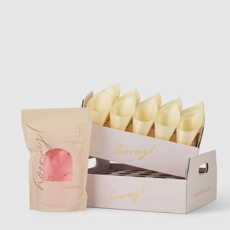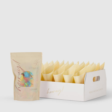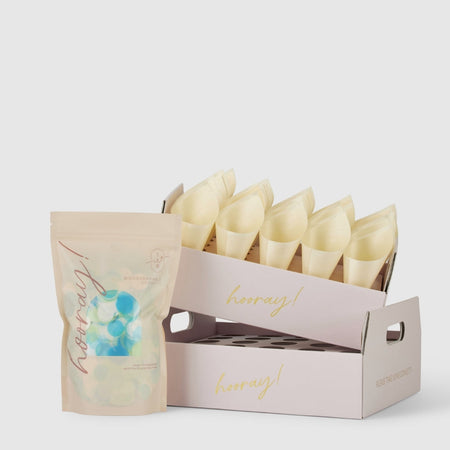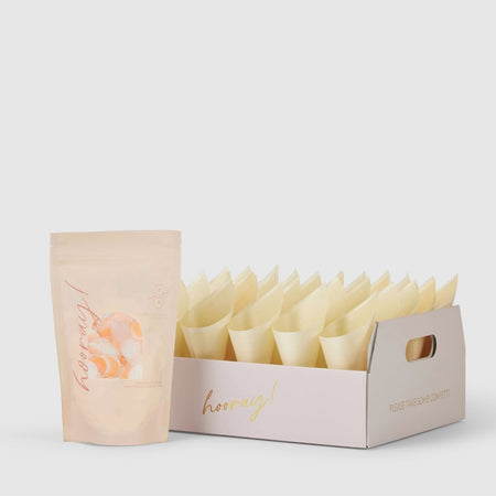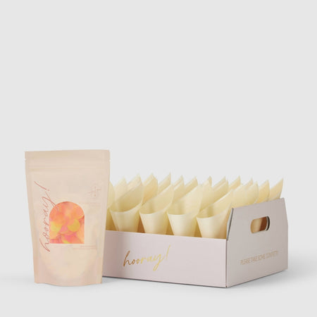 This bundle comes with everything you need to get your confetti moment sorted – no extra planning required. Simply choose your colour scheme and guest numbers, and we’ll take care of the rest.
