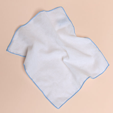 Looking for that perfect “something blue”? Our wedding day handkerchiefs are made from 100% soft cotton and finished with a delicate blue-stitched border – a timeless keepsake that blends tradition with thoughtful detail.