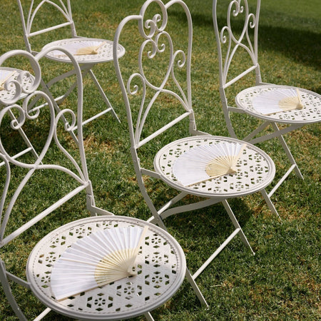 Keep your guests cool in style with our elegant handheld fans – a must-have for wedding celebrations. Whether placed on ceremony seats, handed out at cocktail hour, or gifted to your bridal party, these fans are as practical as they are pretty.