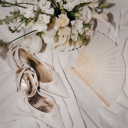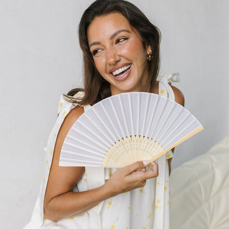 Crafted from lightweight bamboo and soft white taffeta silk, they’re timeless, versatile, and easy to carry. Not just a way to beat the heat, but a thoughtful keepsake your loved ones can treasure long after the day.