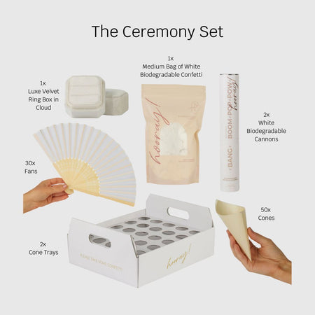 ✔ Everything you need for your ceremony, bundled in one convenient set. ✔ Eco-friendly confetti that looks incredible in photos and is kind to the planet. ✔ Perfectly packaged to take the stress out of wedding prep.