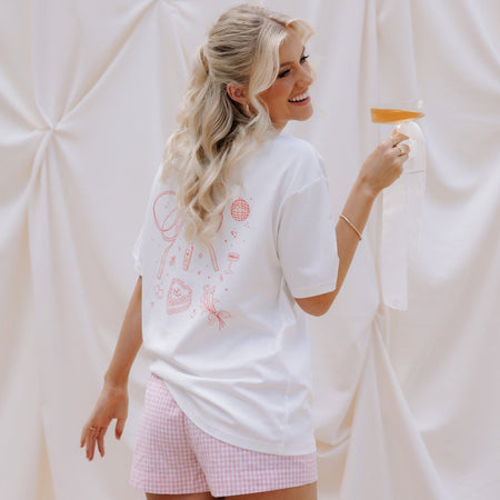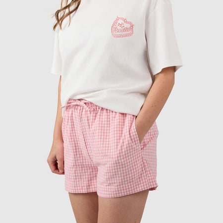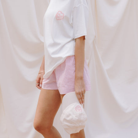 These are the shorts. Think soft, dreamy cotton in the cutest pink gingham check, with a comfy relaxed fit and adjustable drawstring waist – aka your new go-to for every pre-wedding moment.